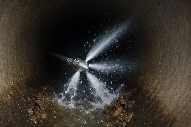 L’eau qui jaillit sous pression par les trous de la buse permet non seulement de la faire avancer, mais aussi de racler les parois intérieures de la canalisation. Ainsi, tous les débris qui obstruent l’écoulement sont décollés. Il peut s’agir de gras, de matières organiques, mais aussi de dépôts minéraux comme le calcaire.